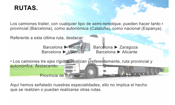 1. Camión trailer con semi-remolque de lateral bajo o plataforma con medidas interiores libres de 13,60 mts. de largo y 2,55 mts. de ancho, con una capacidad de carga útil de 26 Tn.